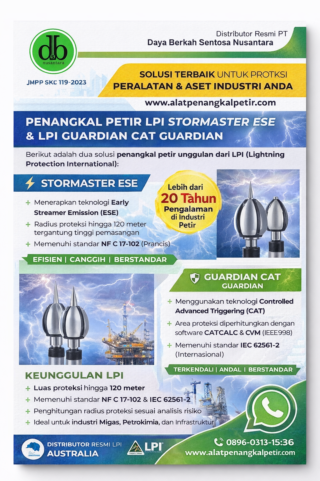Pemahaman mendalam terhadap perbedaan LPI Stormaster dan LPI Guardian CAT akan membantu konsultan dan kontraktor menentukan sistem yang tepat guna, tepat risiko, dan tepat standar, sehingga investasi proteksi petir benar-benar memberikan nilai jangka panjang bagi proyek industri, sekaligus memastikan kepatuhan teknis dan keselamatan operasional dari awal hingga akhir siklus proyek perbedaan LPI Stormaster dan LPI Guardian CAT.